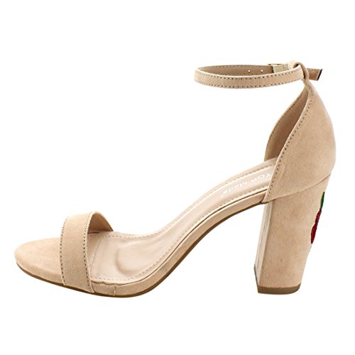 Top Moda EH76 Women's Ankle Strap Embroidered and Covered Block Heels Sandals
