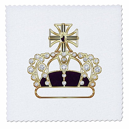 3dRose Gold, Purple, and Faux Diamond Royal Crown Quilt Square, 8 x 8"