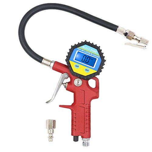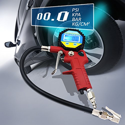 - Inflation Gun, Air Pressure Gauge, Rubber Hose, Air Chuck, and LCD Backlit Screen are all combined in one Easy-to-Use unit, just connect it to your air pump or compressor and inflate tires
