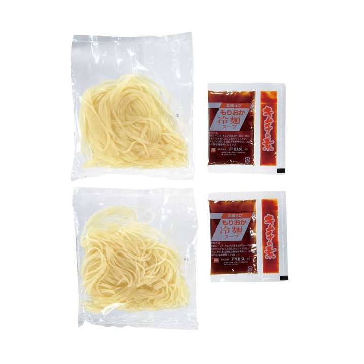 ●北緯40度の街で有名な岩手県盛岡名産の冷麺です。製造は小麦粉などを蒸して練るという『蒸練(じょうれん』と言う方法であり、独特の食感を出しています。今回の商品は辛味の調整できるキムチの素もスープに別添えしてありますので色々な方に楽しんでお召し上がりいただけるようにしております。