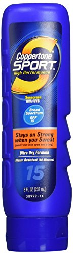 UVA/UVB. Ultra Sweatproof - Won't run into eyes & sting. No Slip Grip - Ultra dry formula. Coppertone Sport Lotion is equipment for your skin. This high performance, ultra sweatproof sunscreen bonds to your skin on contact and won't run into your eyes and sting. Plus, the ultra dry formula doesn't leave a greasy residue which could adversely affect your grip. This formula is also oil free, hypoallergenic, waterproof, and PABA-free.Feature