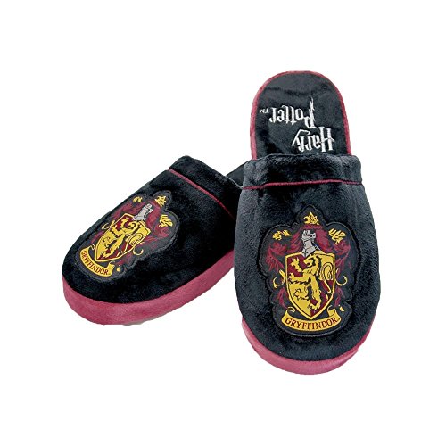 -. Binding : Apparel -. Brand : Harry Potter -. Color : Black -. Department : mens -. EAN : 5055437912773 -. Feature : Avaliable in two sizes: Small and Large / Small: UK 5-7/EU 38-41/ US 6-8 | Large: UK 8-10/EU 42-45/US 9-11 / Made from Polyester with Anti slip sole / Woven badge to body and embroidery to inner sole / 100% officially licensed merchandise -. IsAdultProduct : 0 -. Label : Harry Potter -. Manufacturer : Harry Potter -. Model : 7501 -. MPN : 91277/91276 -. PackageQuantity : 1 -. PartNumber : 91277/91276 -. ProductGroup : Shoes -. ProductTypeName : HOME -. Publisher : Harry Potter -. Studio : Harry Potter -. Title : Harry Potter Gyffindor Mule Slippers 'Black and Burgundy' Adult Medium UK 5-7