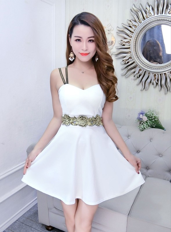 商品名□コサージュ付クロスバックキャミソールフレアミニワンピース全3色FYQ297354#e512e514【予約販売12月下旬より順次発送予定】 【送料無料】フレアミニワンピース パーティードレス コサージュ付 クロスバック キャミソール