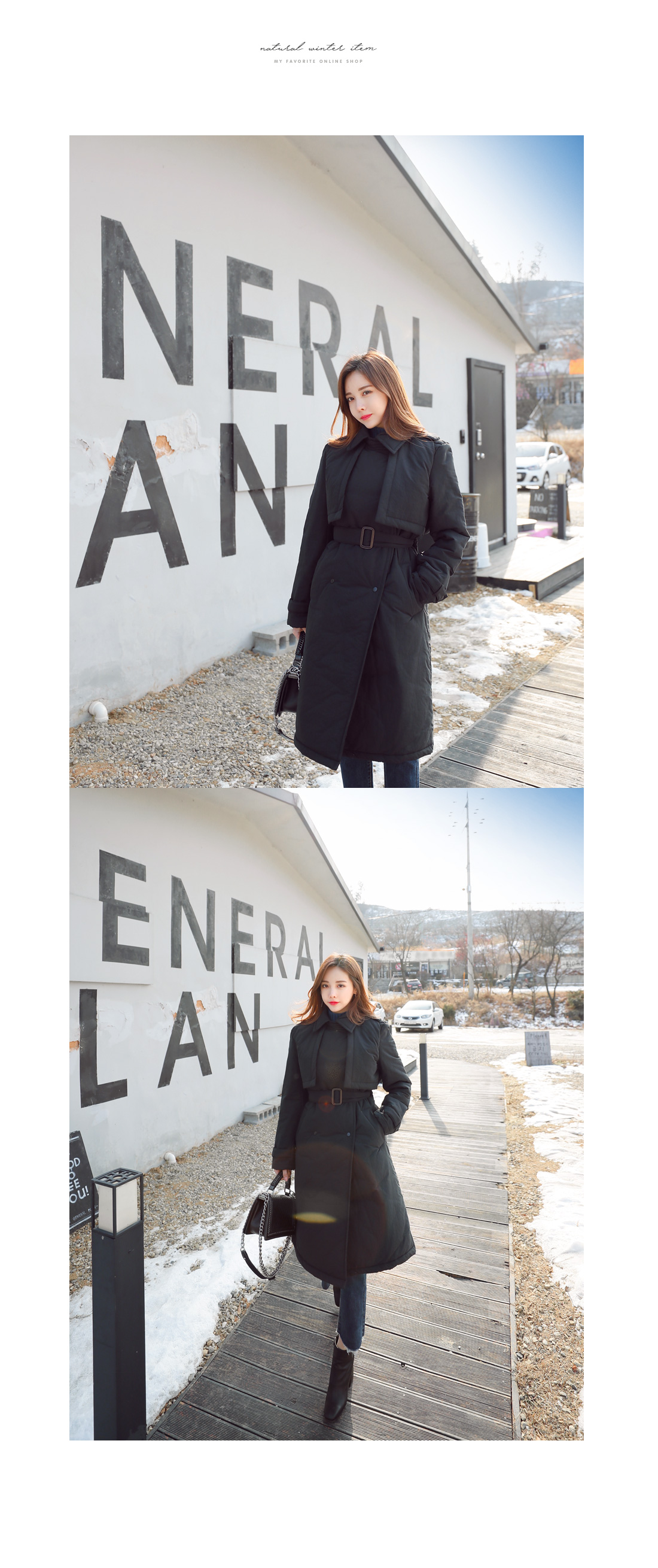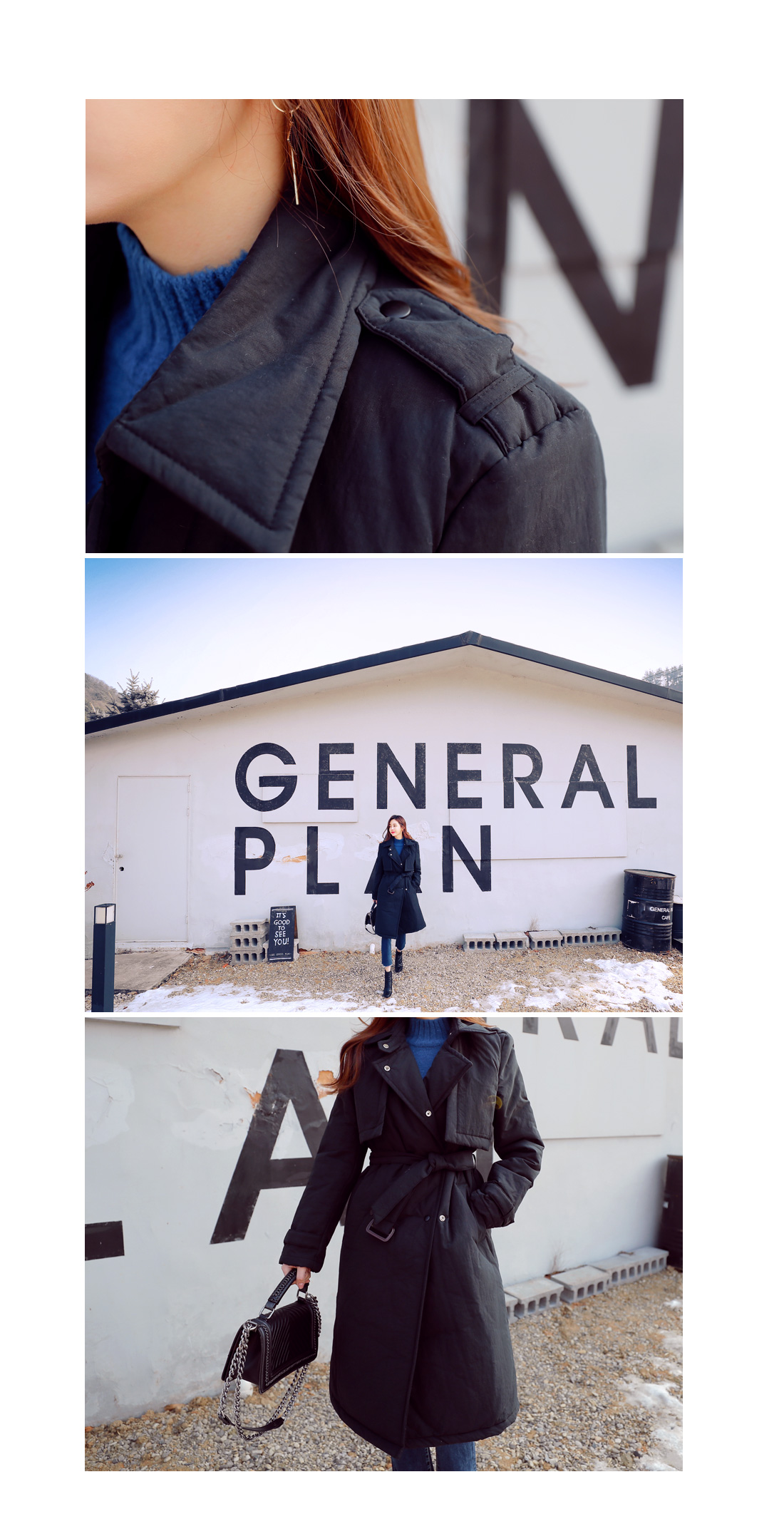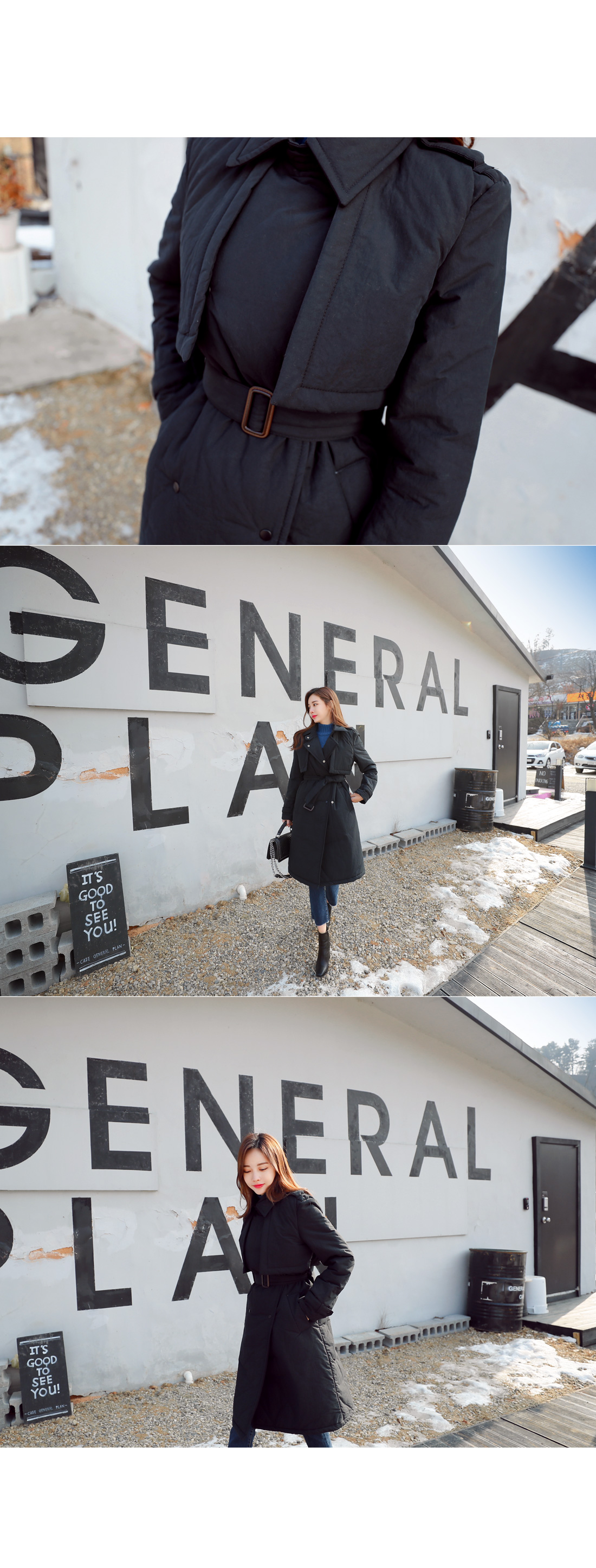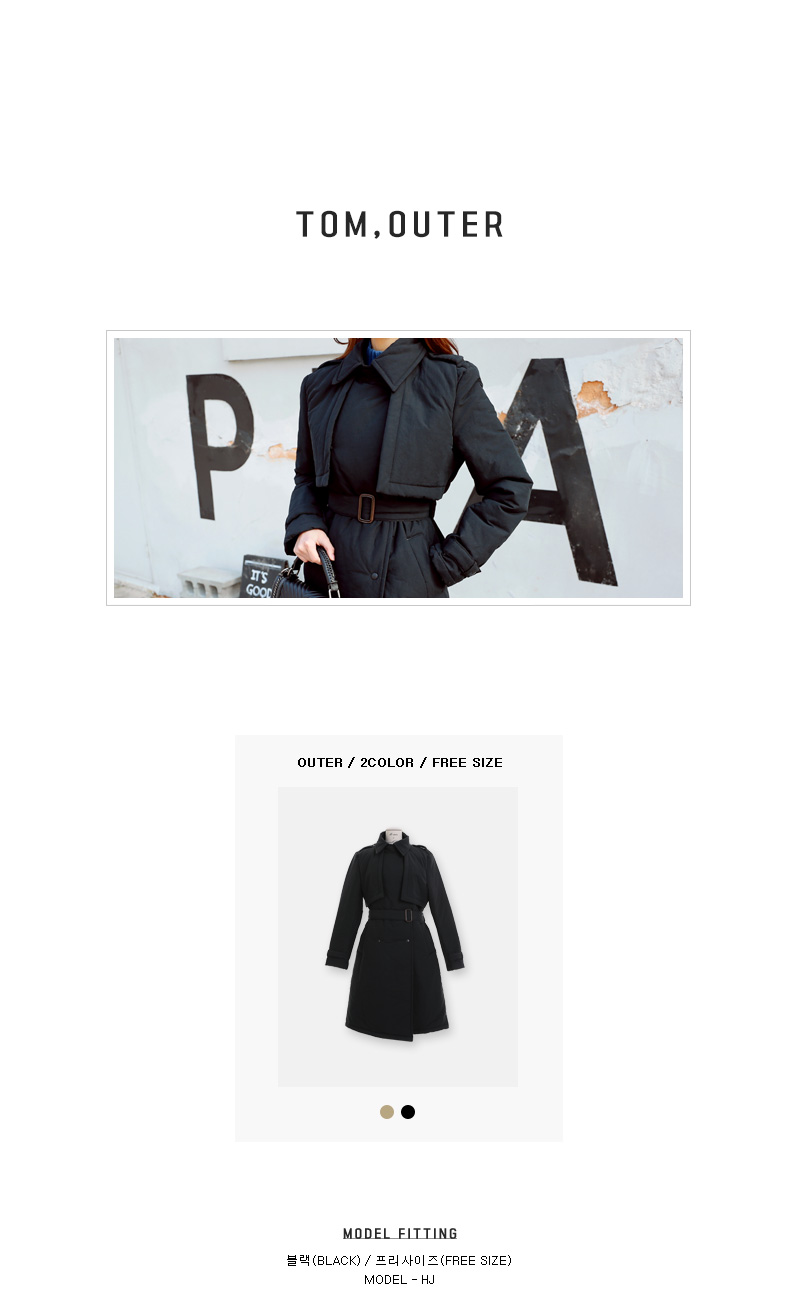 보기만해도 따뜻함이 느껴지는 패딩 코트 소개 해 드릴게요. 일자로 딱 떨어지는 핏감과 어깨 견장 디테일과 소매 버튼 디자인으로세련된 실루엣을 연출해드리면서힙을 덮는 롱 한 기장감으로 더욱 따뜻하게 즐기기 좋아요.안쪽으로 4온스 누빔패딩으로 얇지만 따뜻하게 보온해 드리며깔끔하면서도 밋밋하지 않은 디자인으로 데일리하게 입기좋은 아이템 이에요.허리벨트로 라인을 잡아 연출해주시면 더욱 세련된 핏을 자랑하구요,간편한 탈착용이 가능한 버튼으로 클로징을 도와드려요.양 사이드에는 빅한 포켓으로 포인트와 함께넉넉한 수납공간으로 실용성있도 갖춰 주었어요.하나쯤 소장하고 계신다면 캐주얼룩 뿐만 아니라데일리룩으로도 손색없는 아이템으로 추천 해 드려요.베이지,블랙 두가지 컬러로 만나보세요!