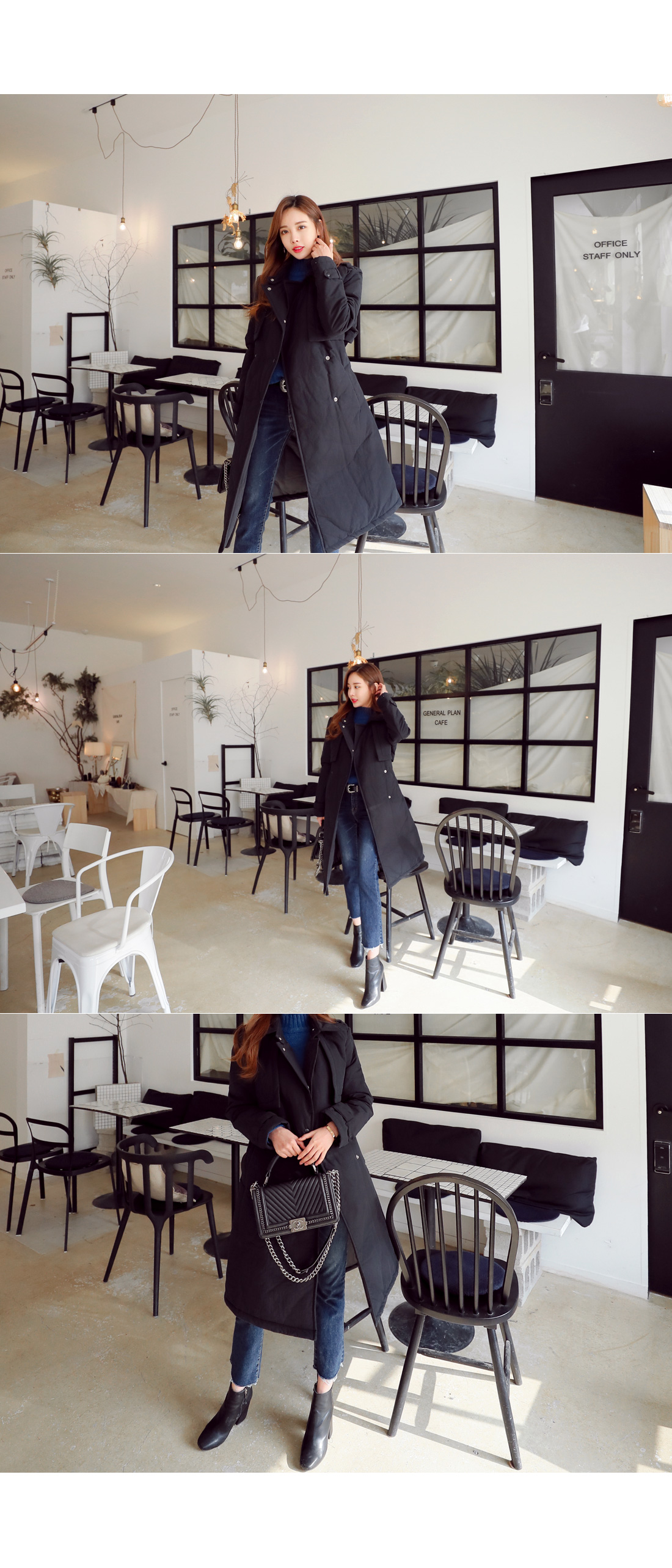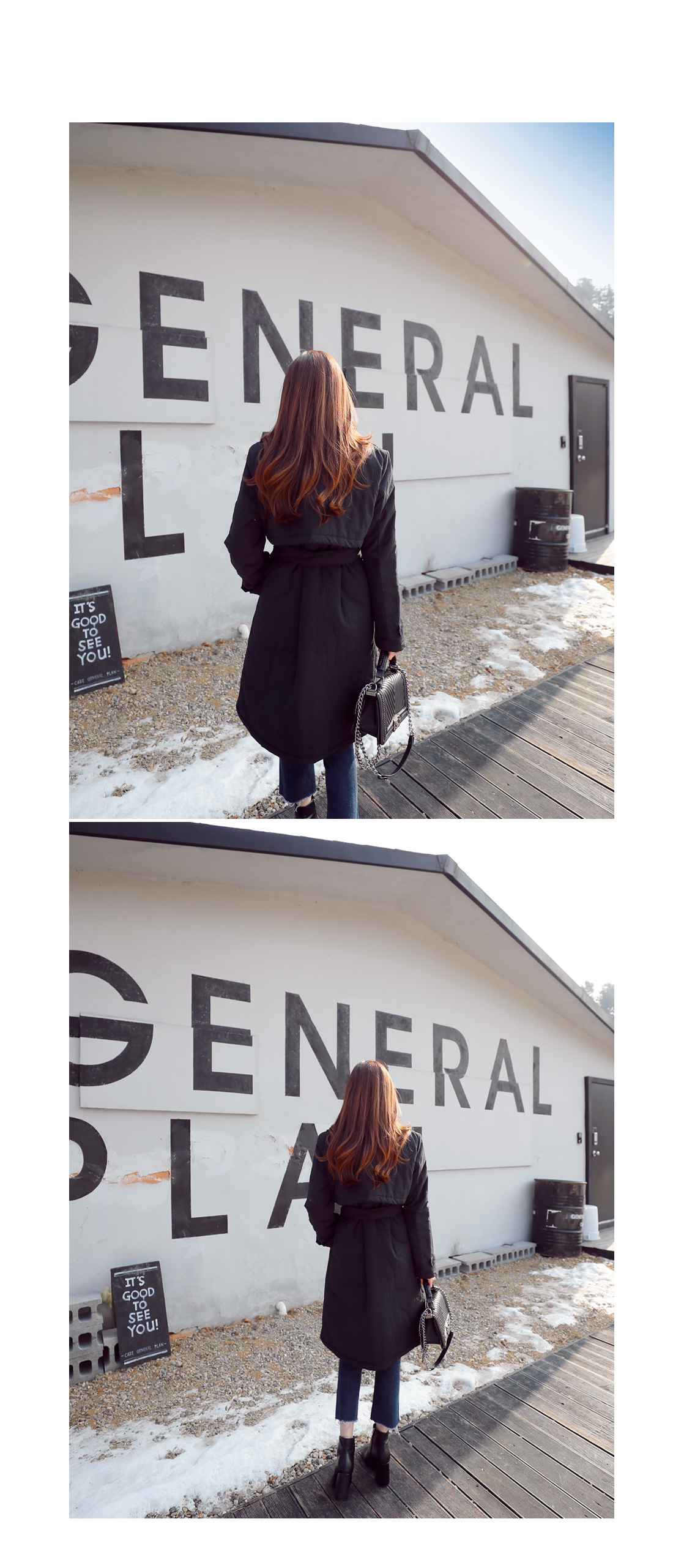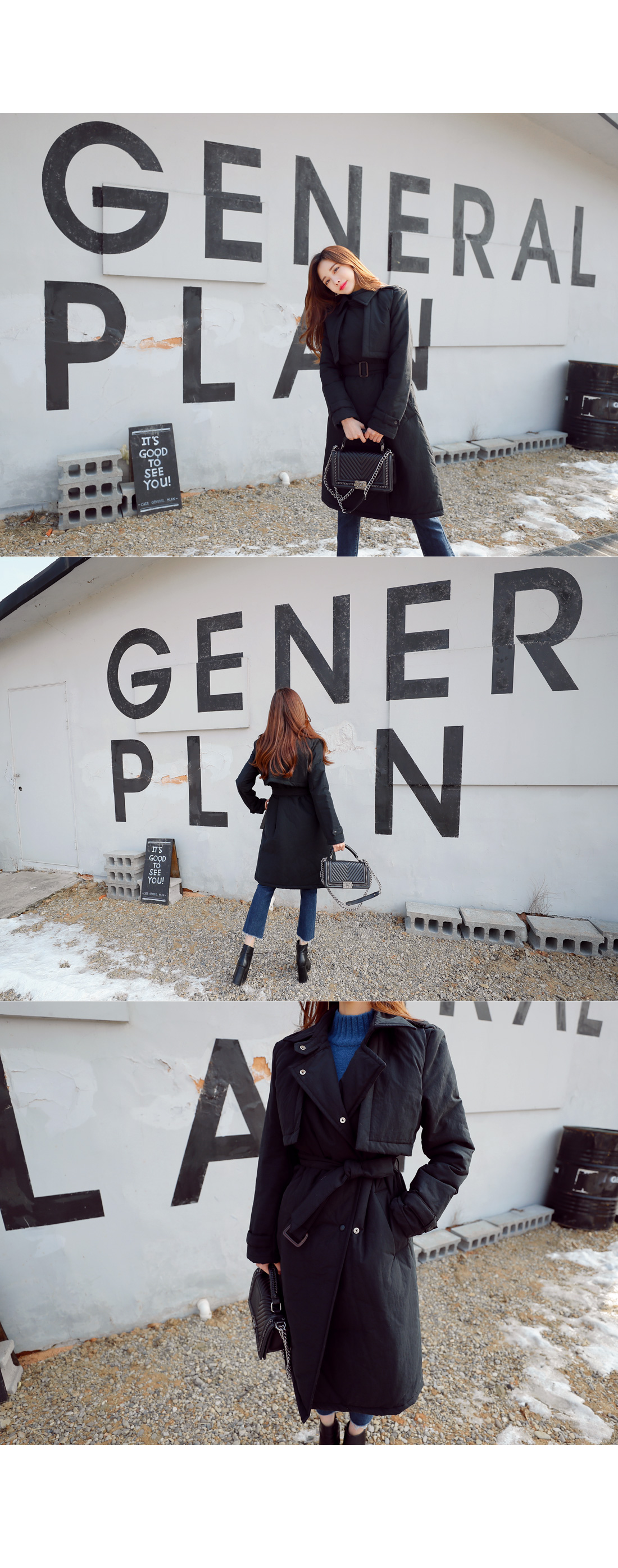 보기만해도 따뜻함이 느껴지는 패딩 코트 소개 해 드릴게요. 일자로 딱 떨어지는 핏감과 어깨 견장 디테일과 소매 버튼 디자인으로세련된 실루엣을 연출해드리면서힙을 덮는 롱 한 기장감으로 더욱 따뜻하게 즐기기 좋아요.안쪽으로 4온스 누빔패딩으로 얇지만 따뜻하게 보온해 드리며깔끔하면서도 밋밋하지 않은 디자인으로 데일리하게 입기좋은 아이템 이에요.허리벨트로 라인을 잡아 연출해주시면 더욱 세련된 핏을 자랑하구요,간편한 탈착용이 가능한 버튼으로 클로징을 도와드려요.양 사이드에는 빅한 포켓으로 포인트와 함께넉넉한 수납공간으로 실용성있도 갖춰 주었어요.하나쯤 소장하고 계신다면 캐주얼룩 뿐만 아니라데일리룩으로도 손색없는 아이템으로 추천 해 드려요.베이지,블랙 두가지 컬러로 만나보세요!