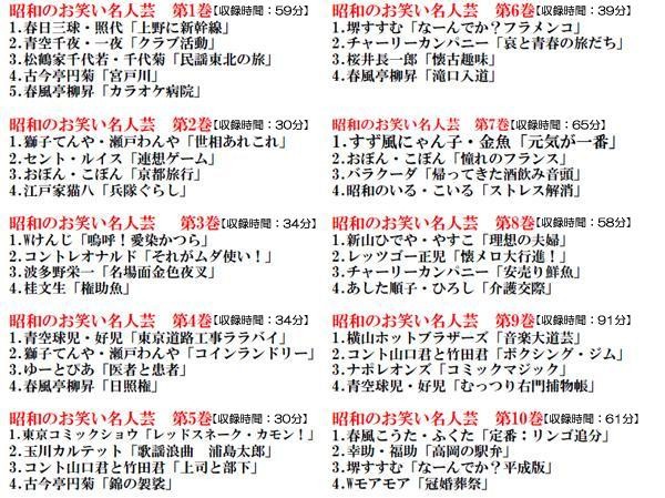 昭和を代表するお笑い名人芸の数々をお楽しみいただける、DVD10枚組です。