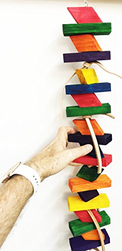-. Feature : This toy is 5 inches wide and 32 inches high. / Great for medium to large birds. / All bird safe materials. / Colorful and visually stimulating. / Quick link for easy cage placement.