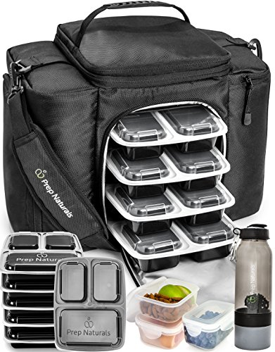 - PERFECT ORGANIZATION – If ample storage space and organization are what you’re after, Prep Naturals Insulated Lunch Boxes are perfect for you. With one insulated compartment and 6 pockets, these big lunch bags help you organize your meals, supplements, fruits, and utensils.