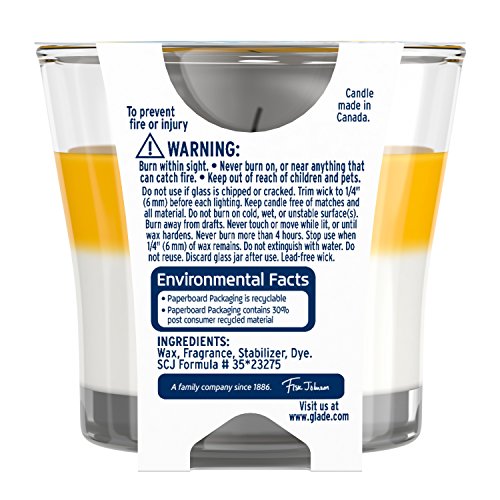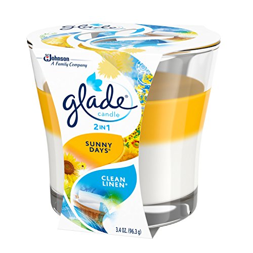 ReleaseDate : 2015-12-19 Studio : Glade Publisher : Glade Binding : Health and Beauty Product Description Every Glade product brings true-to-life fragrance into your home, while the wide variety of devices assures there's one for all your life's needs. Escape everyday stress with the soothing scents and warm glow of Glade 2in1 Candle. Two fantastic fragrances make for a one-of-a-kind experience with Glade 2in1 Candles. Relax as a unique blend of two amazing scents quickly fill the room, forming a unique fusion of fragrance for your home. Each redesigned candle comes in a wide variety of scents. Lazy summer days await with Glade Clean Linen and Sunny Days. Hints of citrus, apple and peony blooms join notes of lavender, rose and sheer woods to bring beautiful days into your home, regardless of the weather. 0