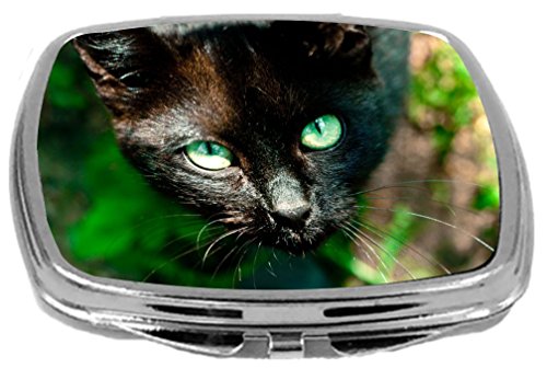 Rikki Knight Compact Mirror, Cat with Bright Green Eyes