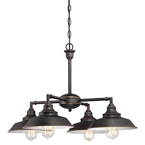 Westinghouse 6343300 Iron Hill Four-Light Indoor Convertible Chandelier/Semi-Flush Ceiling Fixture, Oil Rubbed Bronze Finish with Highlights and Metal Shades