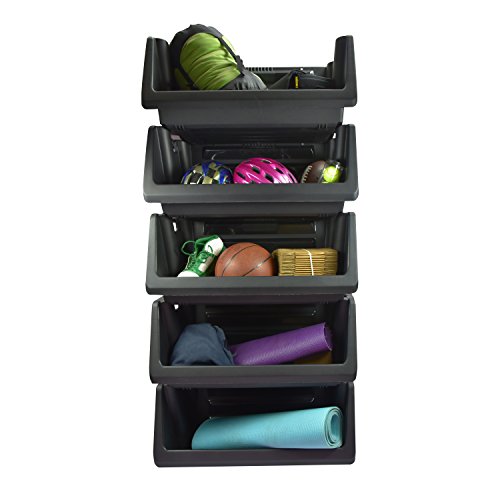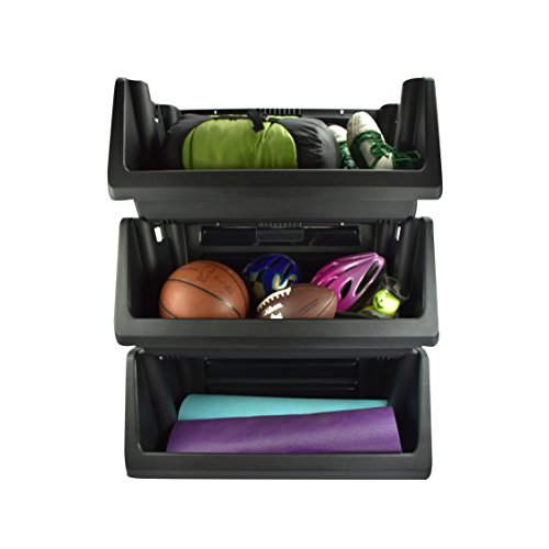 Muscle Rack SB311614-3BK Stackable Storage Bin, 14.5" Height, 31.5" Width, 16.5" Length, Black (Pack of 3)