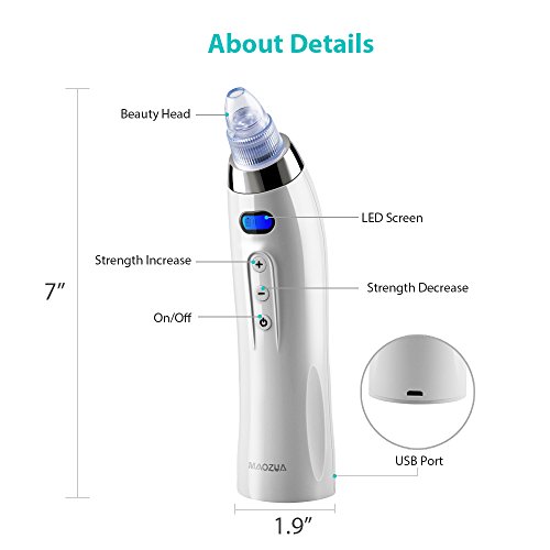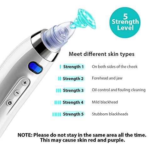 - Easy To Use -- Apply the steaming device or hot towel for 3-5 minutes to open the pores, then trun on the pore cleanser device to choose the proper suction heads and strength level, just several simple steps you can remove the stubborn blackheads in your face, you are worth it. The pore cleaner tool is suitable for different skin types. Remember to start with the lowest suction level.