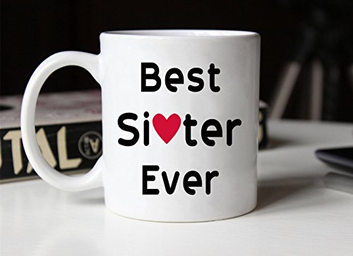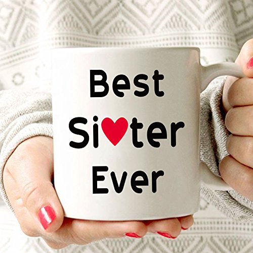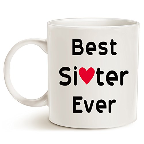 Christmas Gifts Mug for Sister, Best Sister Ever Cofee Mug Unique Christmas or Birthday Gifts Porcelain Cup White, 14 Oz by LaTazas