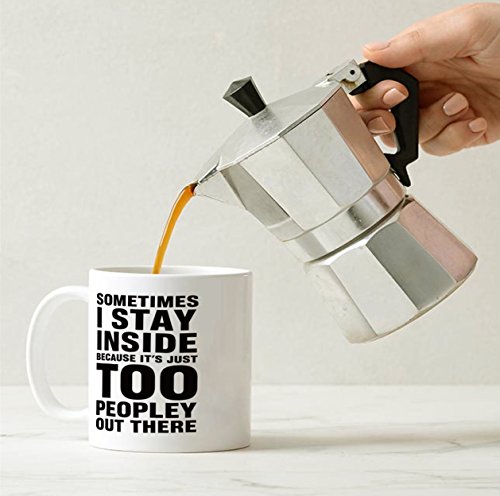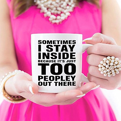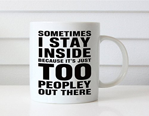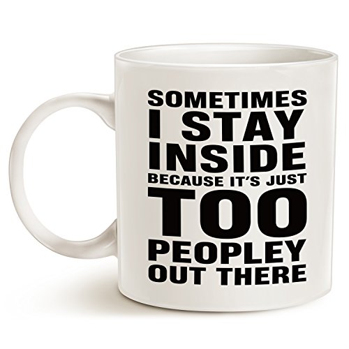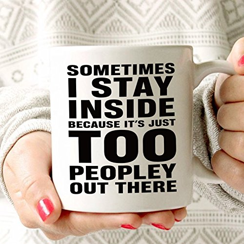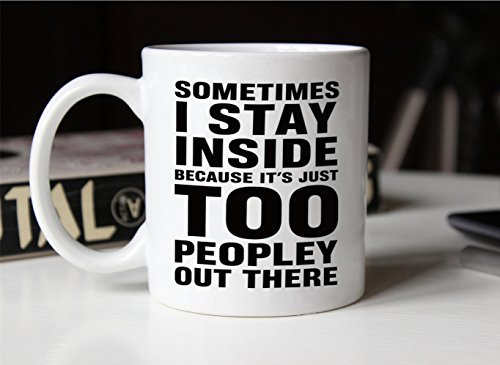 Funny Saying Coffee Mug Christmas Gifts - Sometimes I Stay Inside Because It's Just Too Peopley Out There - Unique Christmas or Birthday Gifts Porcelain Cup White, 14 Oz by LaTazas