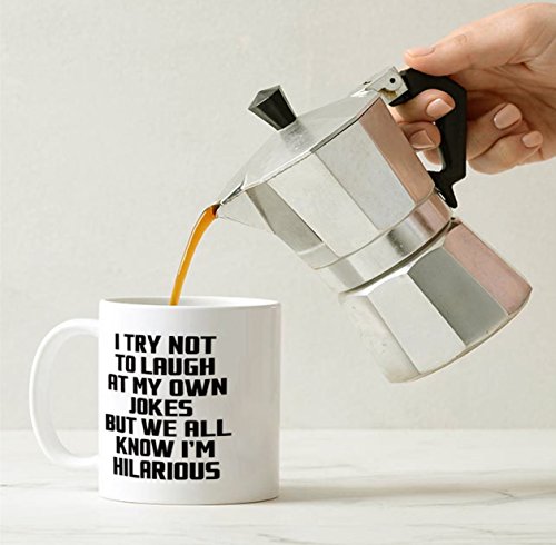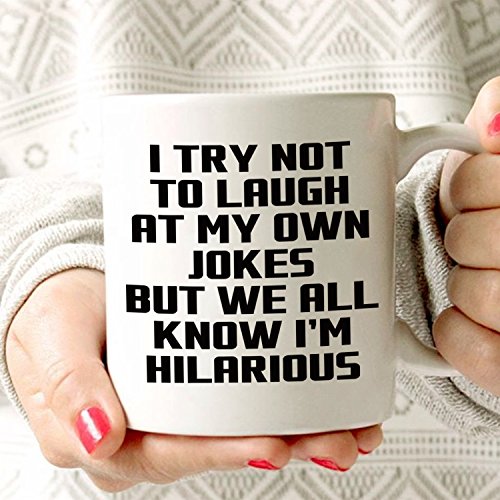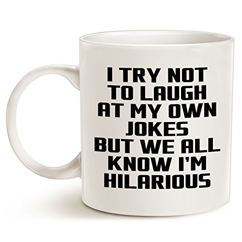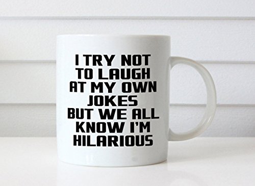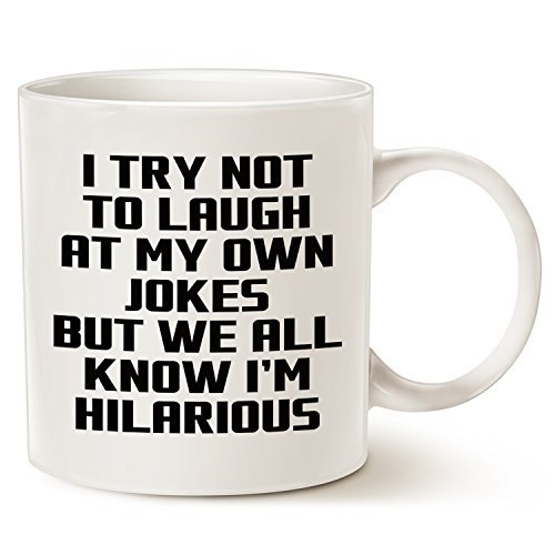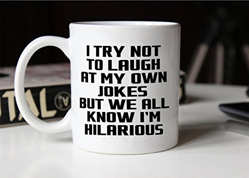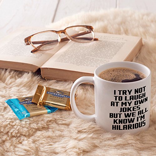 Funny Saying Coffee Mug Christmas Gifts - I Try Not to Laugh at My Own Jokes But We All Know I'm Hilarious - Unique Christmas or Birthday Gifts Porcelain Cup White, 14 Oz by LaTazas