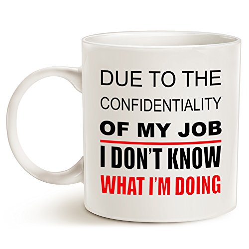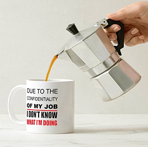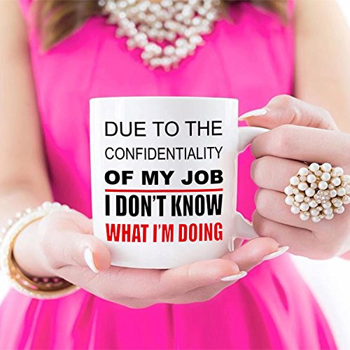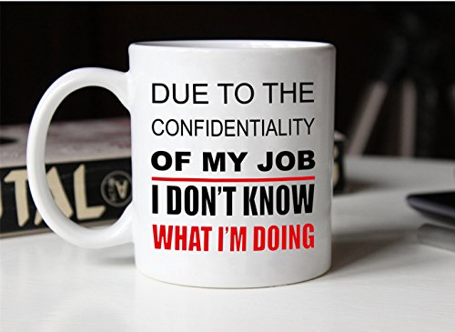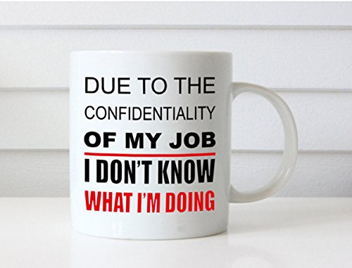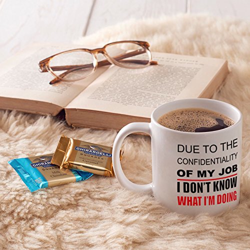 Funny Quote Coffee Mug Christmas Gifts - Due to the confidential job I don't know what I'm doing - Unique Christmas or Birthday Gifts Porcelain Cup White, 14 Oz by LaTazas