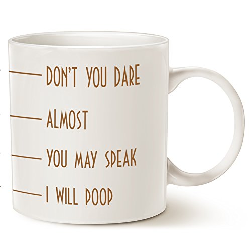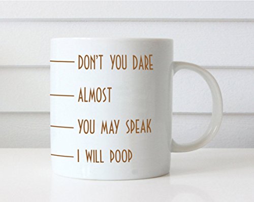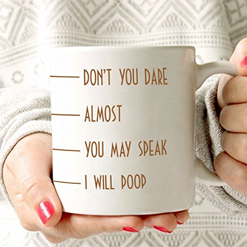 Funny Quote Poop Coffee Mug Christmas Gifts - Don't you dare, almost, you may speak, I will poop - Fun Christmas or Birthday Joke Gifts Porcelain Cup White, 14 Oz by LaTazas