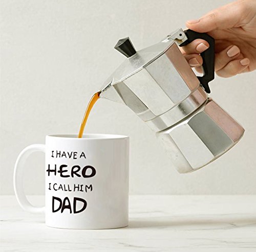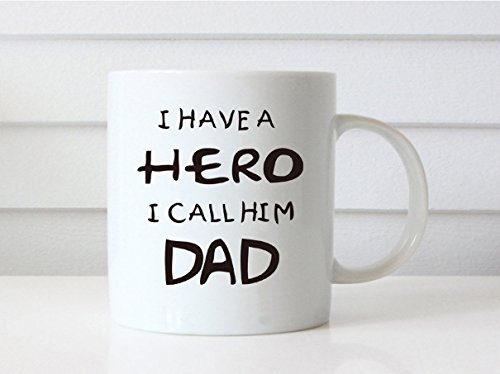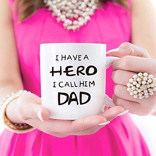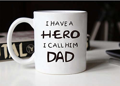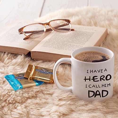 Christmas Gifts for Dad Coffee Mug - I HAVE A HERO I CALL HIM DAD - Funny Best Father's Day and Birthday Gifts for Dad, Father, Grandpa Porcelain Cup, White 14 Oz by LaTazas