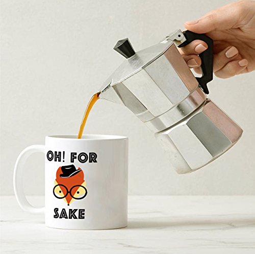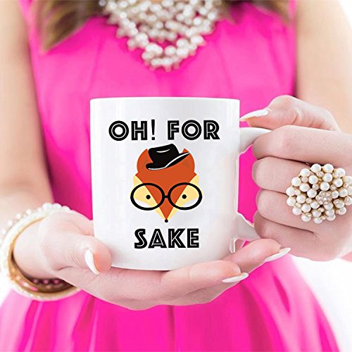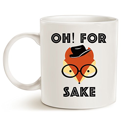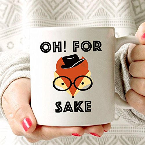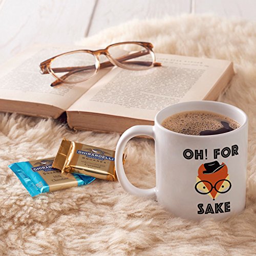 Funny Quote Fox Coffee Mug Christmas Gifts - OH FOR FOX SAKE - Unique Cute Christmas or Birthday Gifts for Friend Cute Porcelain Cup White, 14 Oz by LaTazas