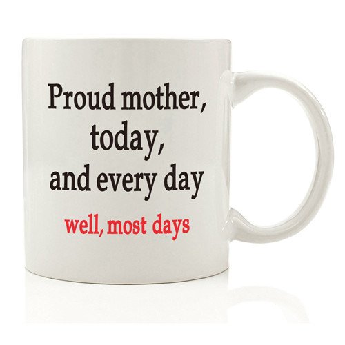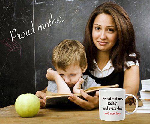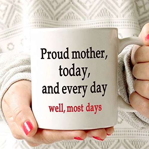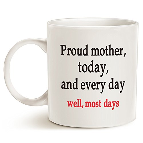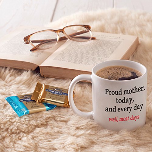 MAUAG Christmas Gifts Mom Coffee Mug - Proud mother, today, and every day Well, most days - Best Birthday Gift for Mom, Mama, Mother, Grandma, Grandmother Porcelain Cup, White 14 Oz by LaTazas