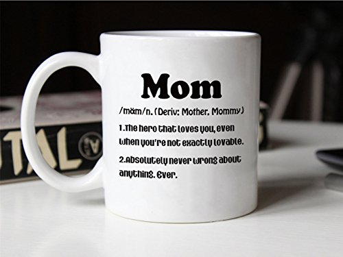 Christmas Gifts Mom Definition Funny Coffee Mug, Christmas or Birthday Gift Idea for Mom Porcelain Cup White, 14 Oz by LaTazas