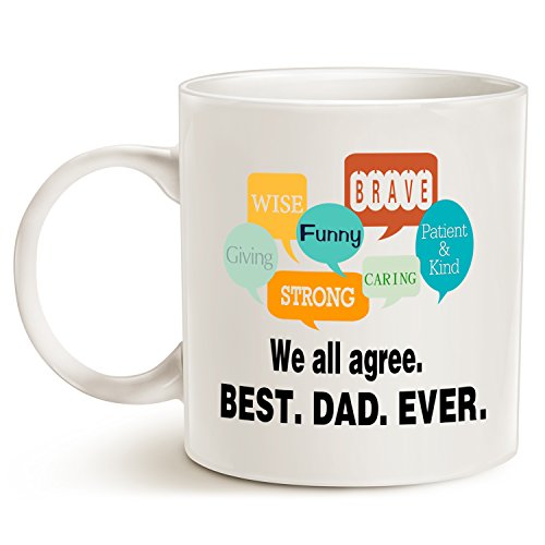 Christmas Gifts Inspirational Saying Coffee Mug for Dad, Best. Dad. Ever. Conversation Bubbles Dad Coffee Mug, Best Birthday Gifts for Father Porcelain Cup White, 14 Oz by LaTazas