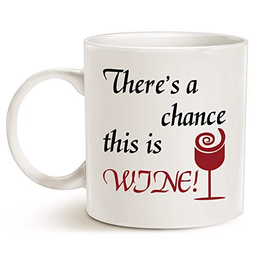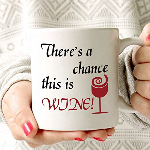 Funny Coffee Mug Christmas Gifts - There's a chance this is wine! - Unique Christmas or Birthday Gifts for Friend Porcelain Cup White, 14 Oz by LaTazas