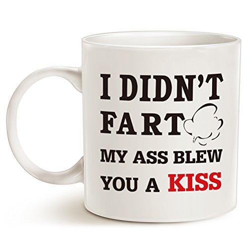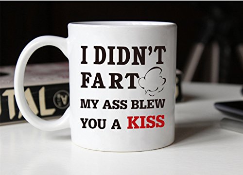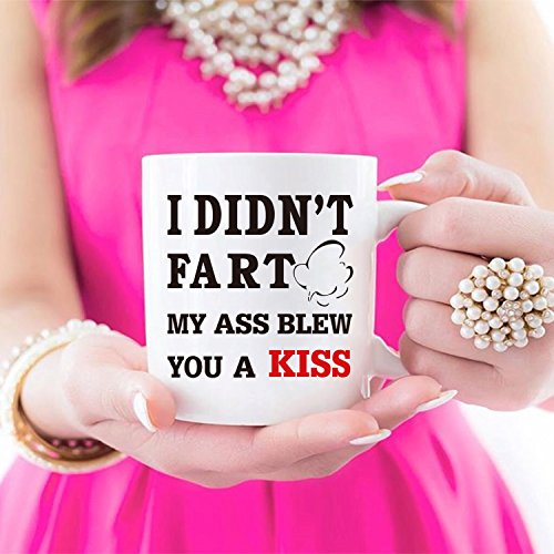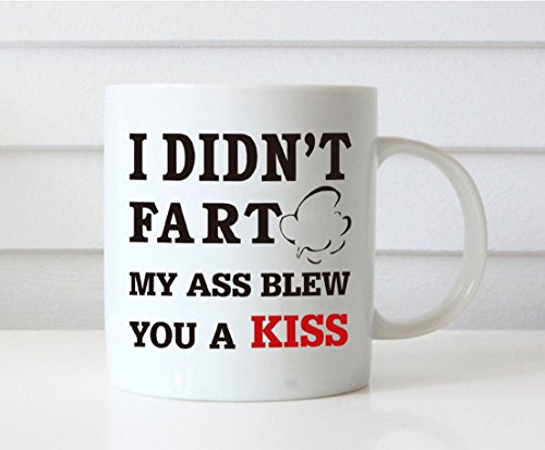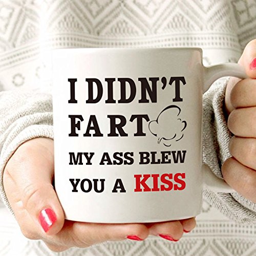 Funny Quote Coffee Mug Christmas Gifts, I Didn't Fart My Ass Blew You a Kiss for Dad, Brother, Friend Great Gift Ideas Porcelain Cup, White 14 Oz by LaTazas
