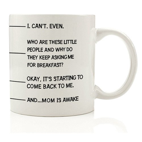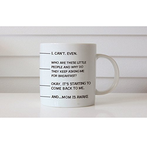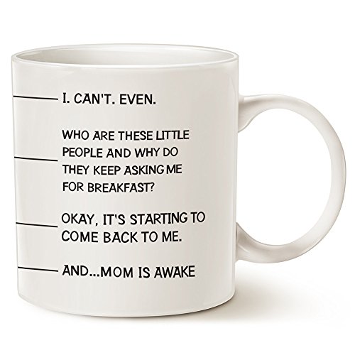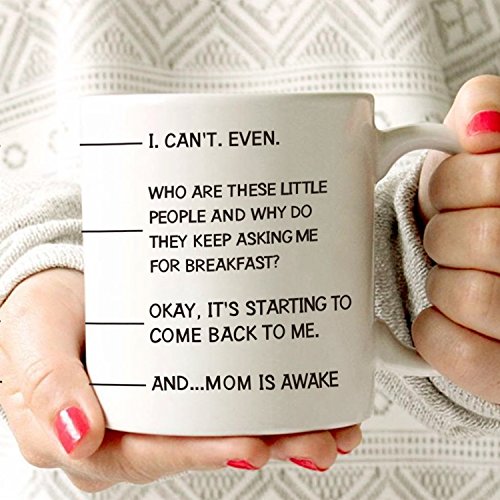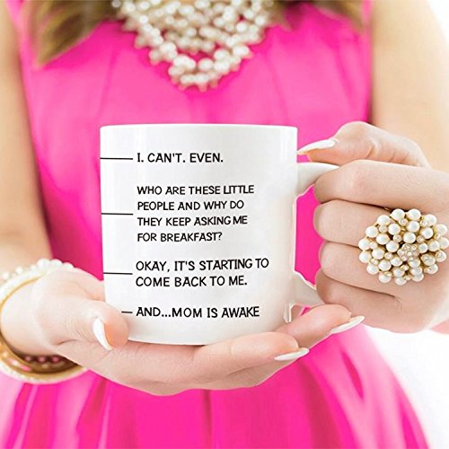 MAUAG Christmas Gifts Idea - Funny Coffee Mug for Mom, I CANT EVEN ... AND...MOM IS AWAKE Ceramic Cup White, 14 Oz by LaTazas