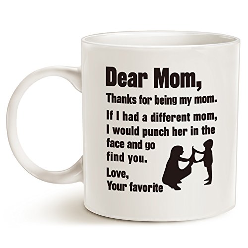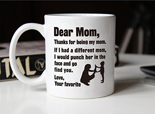 Funny Christmas Gifts for Mom Coffee Mug - Dear Mom, Thanks for being my mom. If I had... Love, Your favorite - Best Gag Gifts for Mom, Mother, Grandma Porcelain Cup, White 14 Oz by LaTazas