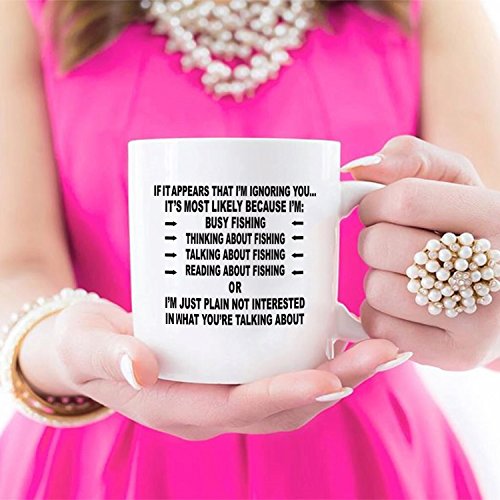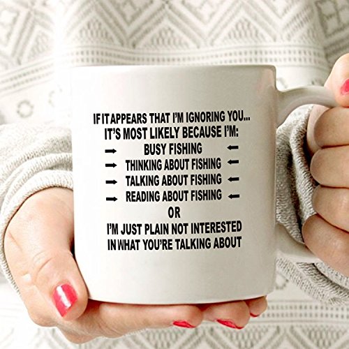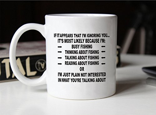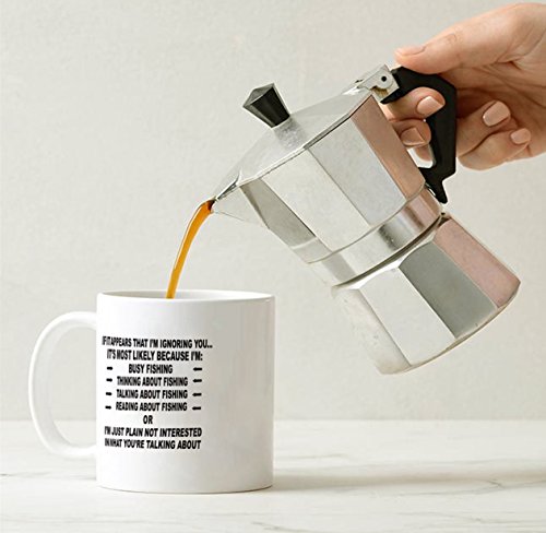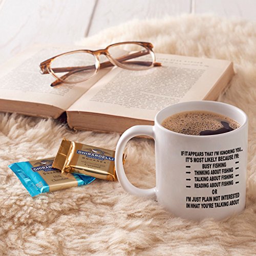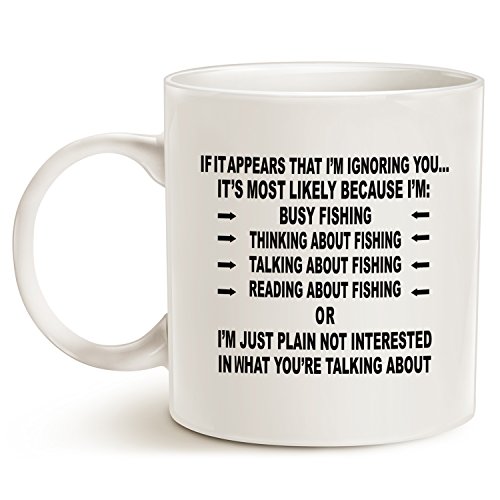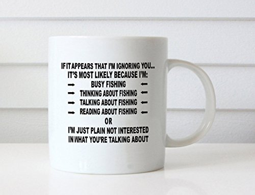 Funny Saying Fishing Obsession Coffee Mug Christmas Gifts, Unique Christmas or Birthday Gifts Porcelain Cup White, 14 Oz by LaTazas