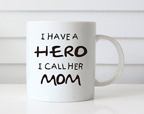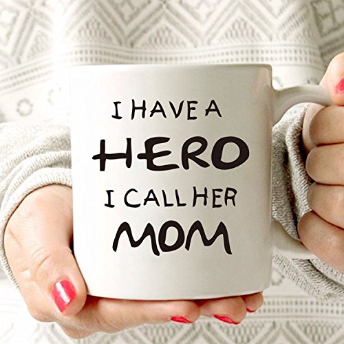Christmas Gifts for Mom Coffee Mug - I HAVE A HERO I CALL HER MOM - Funny Best Father's Day and Birthday Gifts for Mom, Mother, Grandma Porcelain Cup, White 14 Oz by LaTazas