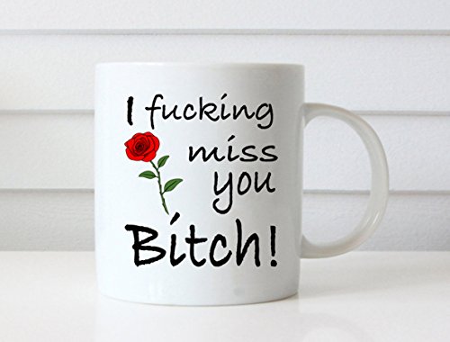 Christmas Gifts Best Friends Long Distance Friendship Funny Coffee Mug - I fucking miss you Bitch! - Unique Christmas or Birthday Gifts for Friend Porcelain Cup White, 14 Oz by LaTazas