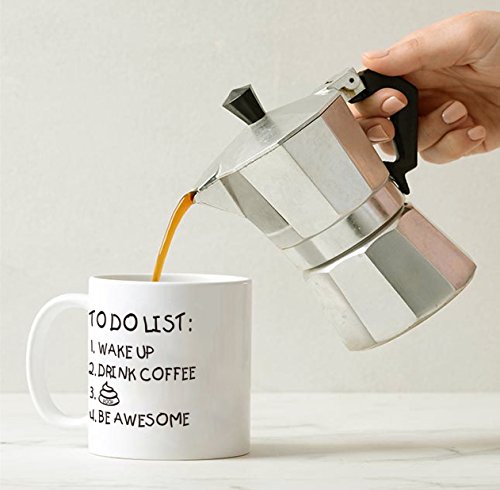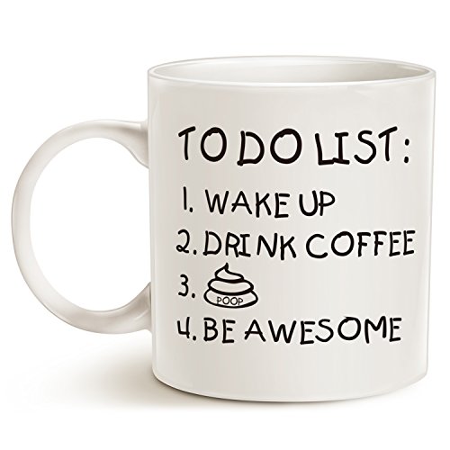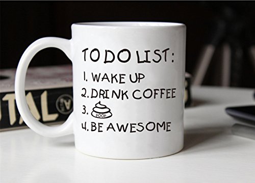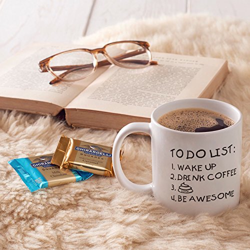 Funny Quote Coffee Mug Christmas Gifts, TO DO LIST Wake Up Drink Coffee Poop Be Awesome Cute Motivational Porcelain Cup, White 14 Oz by LaTazas