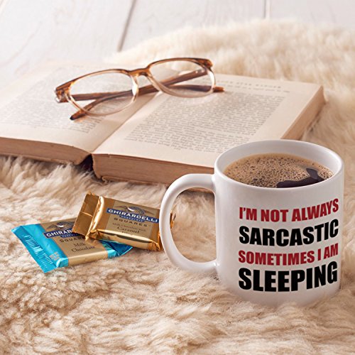 Funny Quote Coffee Mug Christmas Gifts - I'm not always sarcastic, sometimes I'm sleeping - Unique Christmas or Birthday Gifts Porcelain Cup White, 14 Oz by LaTazas