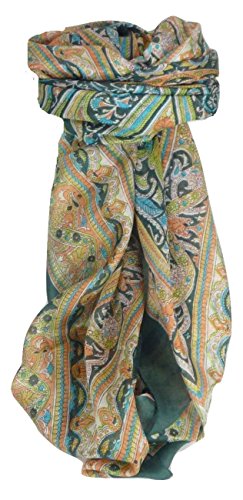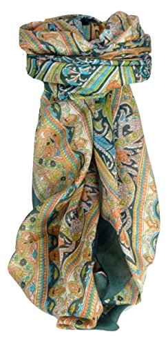 Our Traditional Range is inspired by the floral and paisley patterns that incorporate the vibrant colours of India. The Traditional Range captures the essence of Indian culture by preserving the intricate designs and vibrant colours of past dynasties. This modern interpretation of traditional favourites, still produced by hand, maintain both quality and design. Our Traditional Range brings you a fine quality silk scarf representing all that is best in modern Indian textile design and at a very affordable price. This absolutely charming 100% silk scarf typically measures 100 cm x 100 cm. Each scarf has a luxurious feel. Made from very finely spun cultivated mulberry silk the finish is lighter, softer, rounder, and smoother than raw silk harvested from the wild. Soft and warm to wear, its authentic style is unusual and stunning. This versatile fashion accessory will complement all formal or casual wear. "Momme" (mm) is a measure of the weight of silk fabric. Using the scale 1 momme to 3.75 grams per square meter, our Traditional Range silk scarves typically use silk between 6 and 10 momme, our Classic Range between 8 and 25 momme, and our Heritage Range scarves above 25 momme. Your scarf is supplied with FREE gift-wrap in attractive ivory tissue and presentational frosted bag along with a FREE message service. Warm to wear and easy care. Your scarf or stole should not require frequent cleaning. If you wish to freshen your item, dry clean it or gently hand wash the whole garment in cool soapy water. Never rub the fibres and always dry flat away from direct heat. When required use a cool iron. 0 |