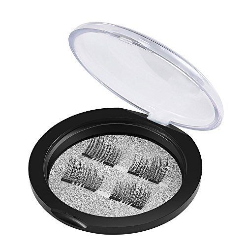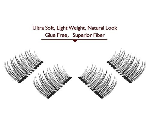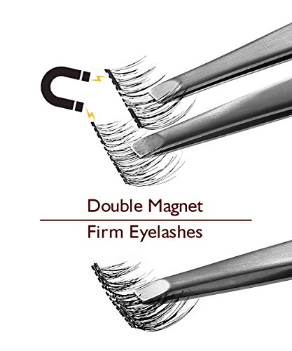 Amonssa Double Magnetic Eyelashes, Handmade Soft False Eyelashes, Ultra Thin Natural Look Fake Eyelashes, Dual Magnetic Reusable Fiber Eye Lashes One Pair 4 PCS black