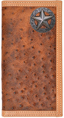 (Genuine Texas Brand)/Accessories/Wallets, Money Key Organizers/DIRECT FROM USA/Custom Fancy Garland Star Long Ostrich Print Leather Wallet Brown