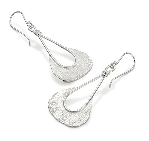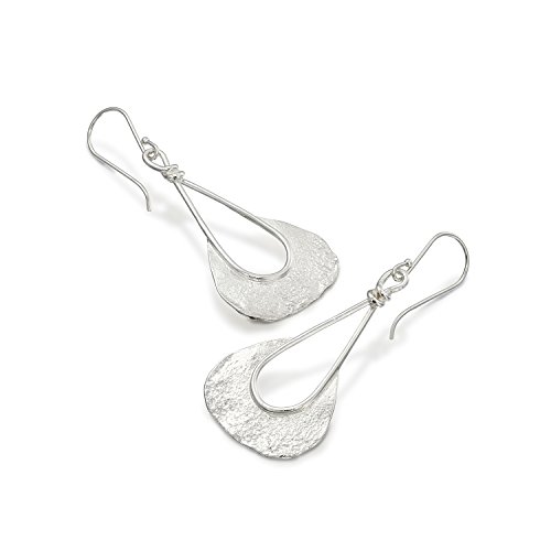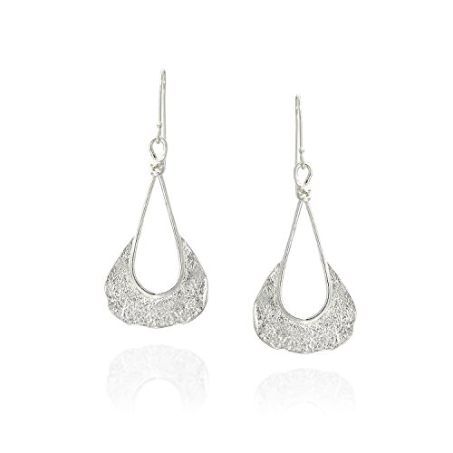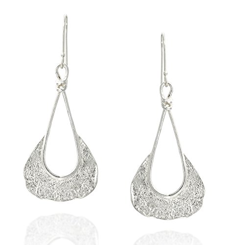 Stylish 925 Sterling Silver free form shaped dangle earrings with unique texture and French wire hooks. Unique artisan design.
