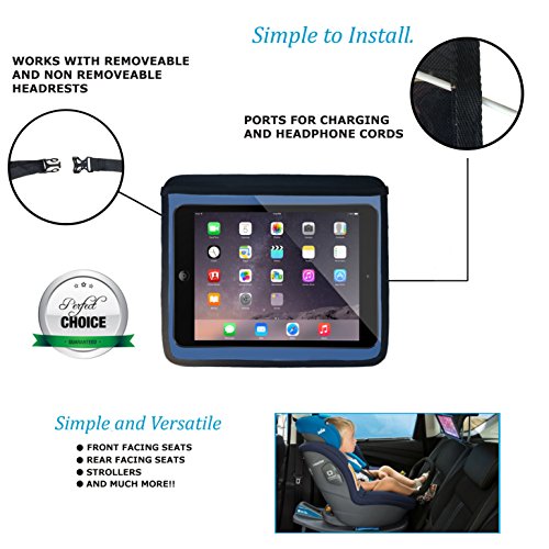 LOADED WITH FEATURES - The iPad holder has ports for charging cords and headphone cables on each side of the holder so that you have full access to features and it works great with the touch screen. The tablet holder has been designed to work with both removable and non-removable headrests and will fit both iOS and Android products.