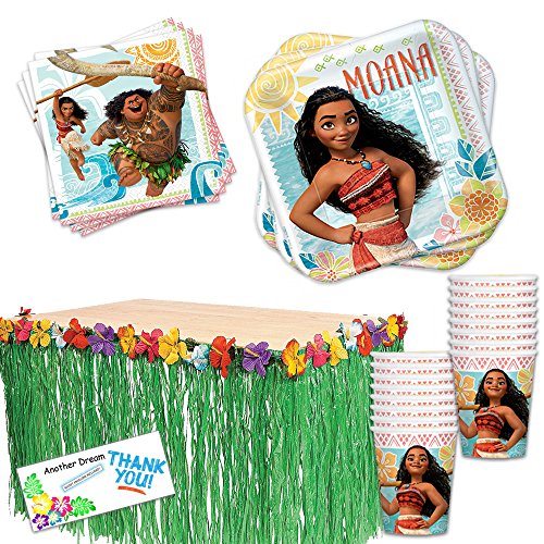 -. Feature : Disney Moana Birthday Party Pack for 16 Includes: / (16) Dinner Plates, (16) Napkins, (16) Cups, (1) Tableskirt+ BONUS ITEM / Table Skirt Size: 9ft / Bonus item exclusivley from Another Dream! / This exclusive Moana Pack sold by Another Dream was created with your child in mind.