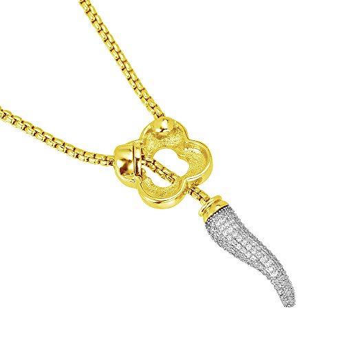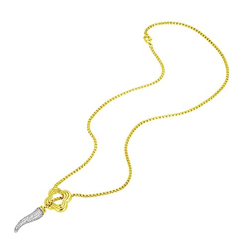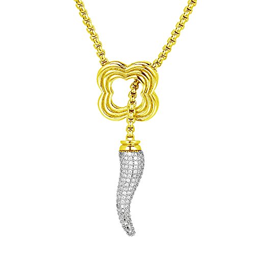 Featuring lariat necklace with a pave CZ Italian horn.