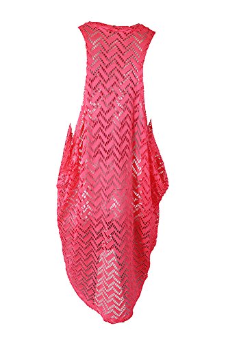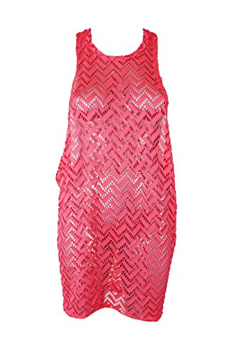 Miken High-Neck Crochet Tunic Cover-Up Neon Coral Small