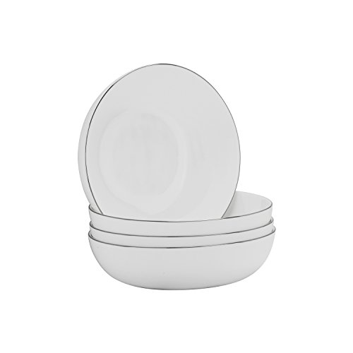 10 Strawberry Street Bone China Silver Band 6.75"/27 Oz Coupe Cereal Bowl, Set of 4, White/Silver