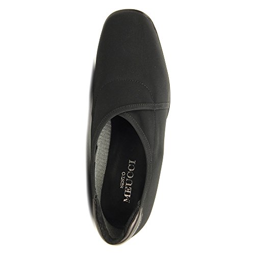 Studio : Sesto Meucci Publisher : Sesto Meucci Binding : Apparel Product Description Slip-on design for quick and easy on and off. Combination leather and fabric interior with cushioned insole for all-day comfort. Flexible and lightweight single-unit rubber sole maintains grip and absorbs shock. Imported. 0