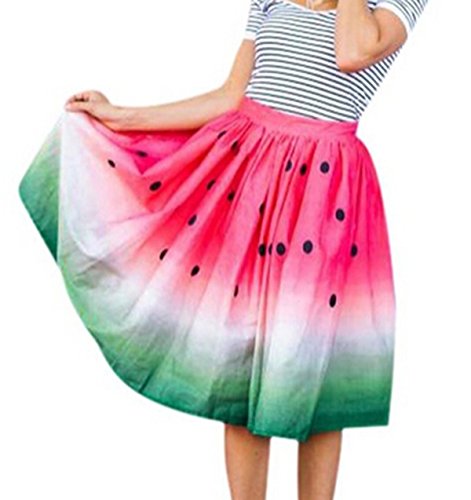 -. Title : 女性の夏のスイカ多色ドットプリントミディスカート