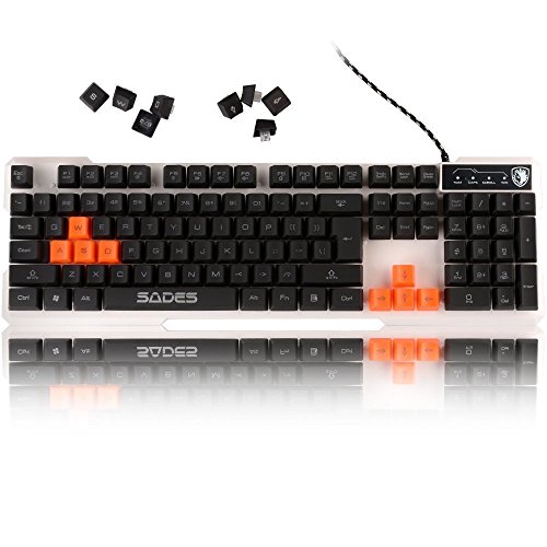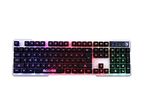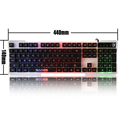 SADES k7 Gaming Keyboard With Colorful Backlight Wired USB 104 keys Automatic Dormancy For PC White Panel