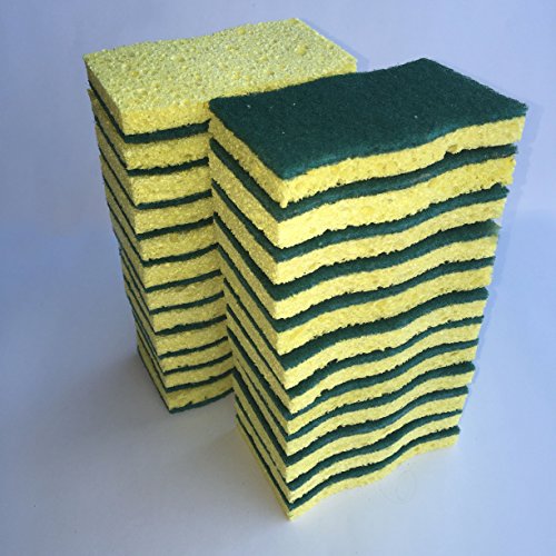 - Heavy duty green scouring pad with absorbent yellow cellulose sponge