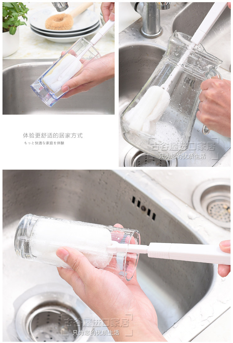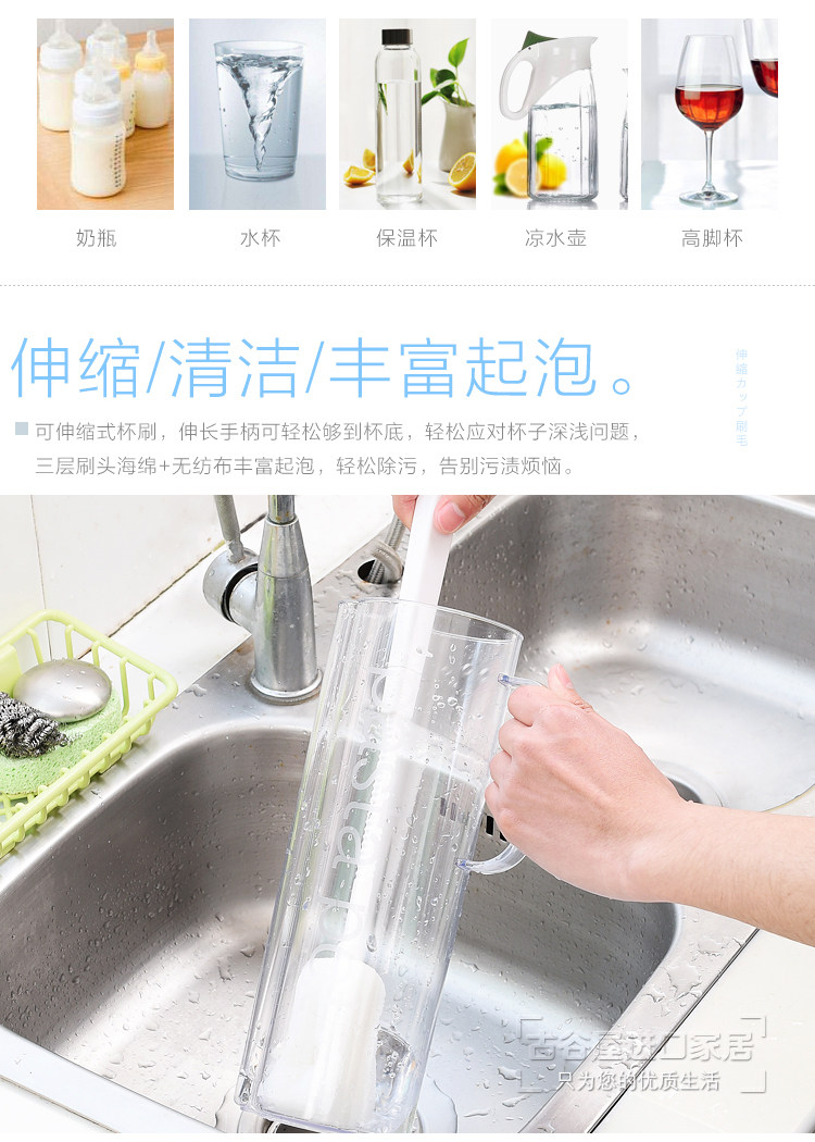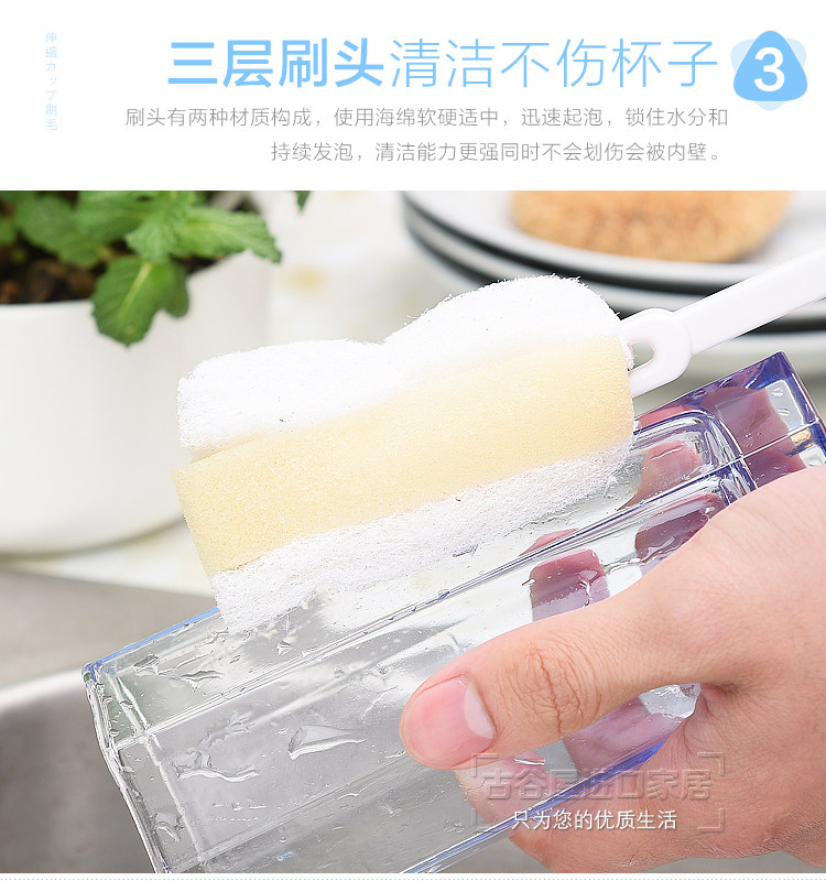 厨房洗杯子刷子伸缩长柄海绵杯刷瓶刷清洗水杯刷奶瓶刷清洁刷